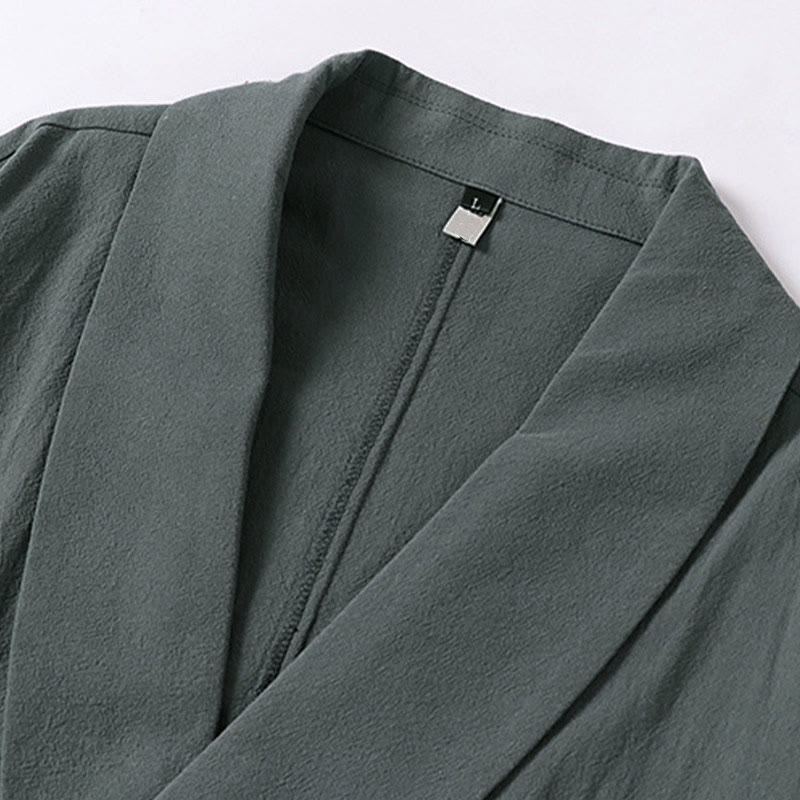 Buddha Stones Chemise d'été pour homme en coton et lin, col en V, manches courtes, col à revers, col en V.