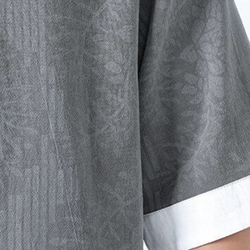 Buddha Stones Chemise en coton à manches courtes et boutons brandebourg, motif fleurs d'été et herbe, style Tang Suit - Gris clair - US/UK/AU46,EU56 (5XL) - image 3