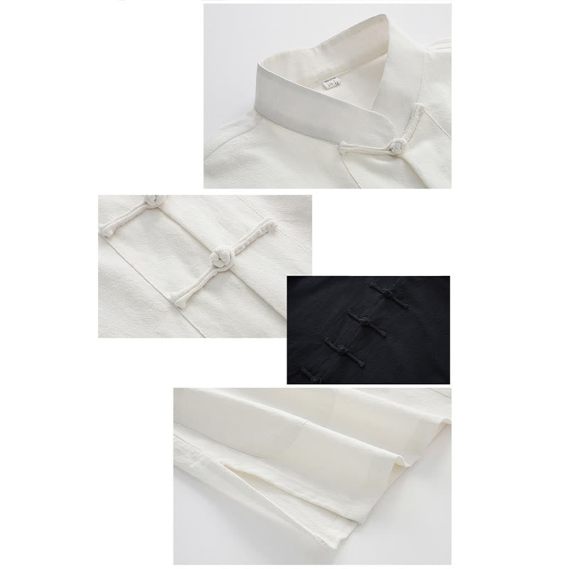 Chemise à manches longues à boutons de grenouille Buddha Stones Tang en coton pour hommes - Blanc - US/UK/AU44,EU54 (4XL) - image 1