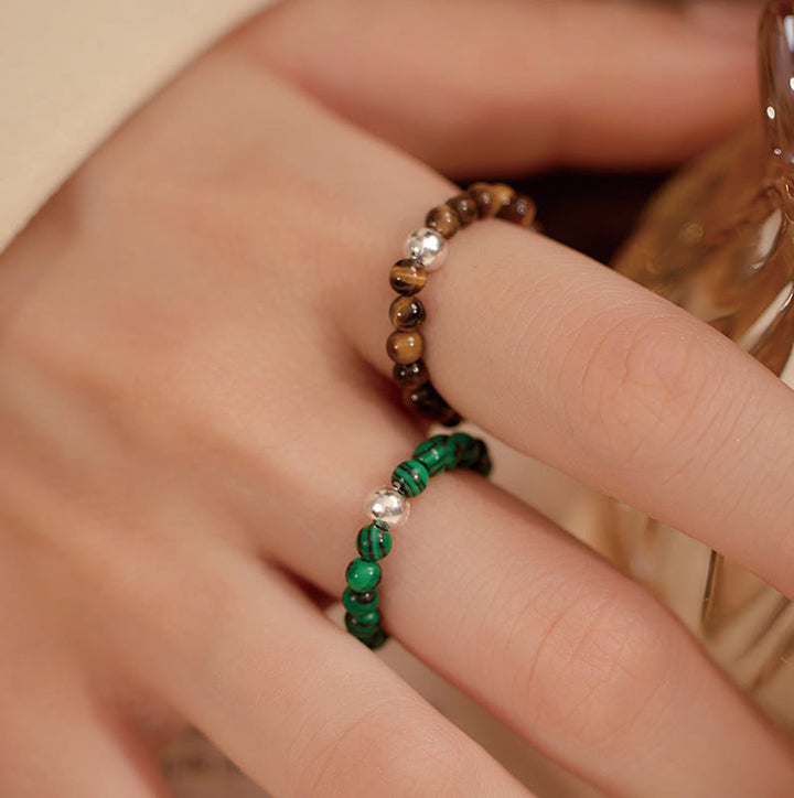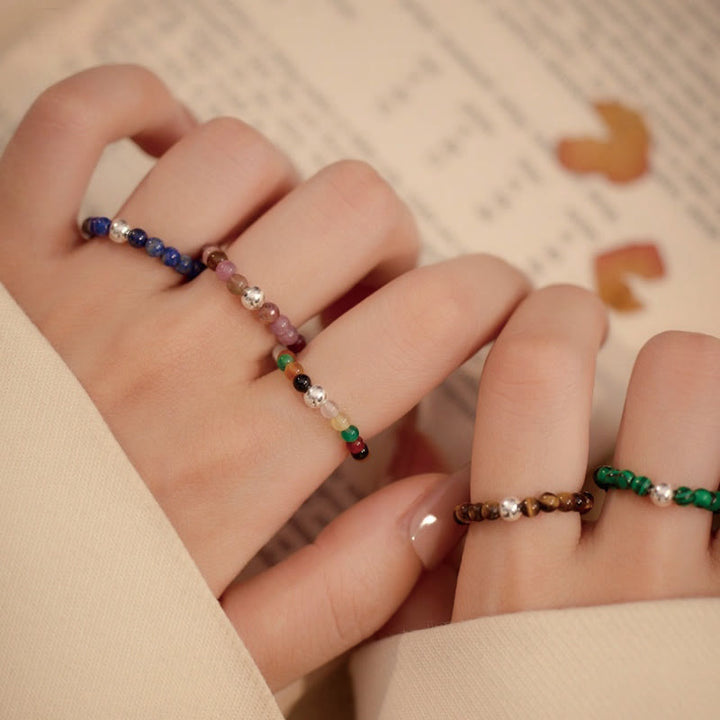 - Matériaux : Jade blanc, onyx noir, aventurine rose, œil de tigre, pierre d'or, malachite, turquoise, topaze, tourmaline, améthyste, agate colorée, lazurite, aventurine verte, argent sterling 925