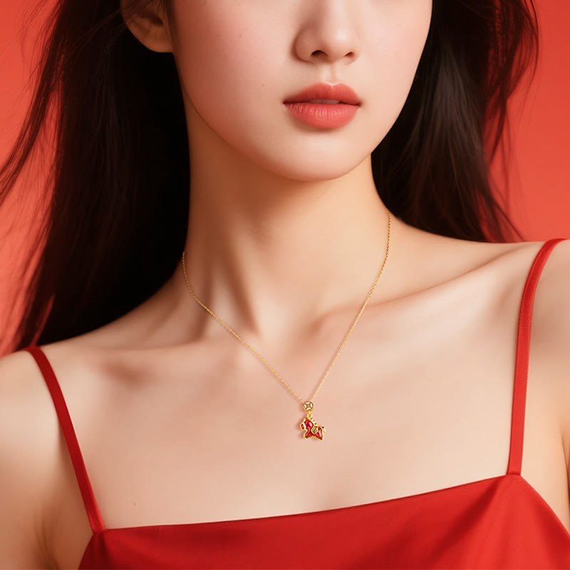 Pendentifs en argent sterling 925 et agate rouge, ornés d'une pièce de cuivre et de pierres de Buddha Stones de l'année du Cheval. - Cheval en argent sterling 925 et agate rouge - image 0