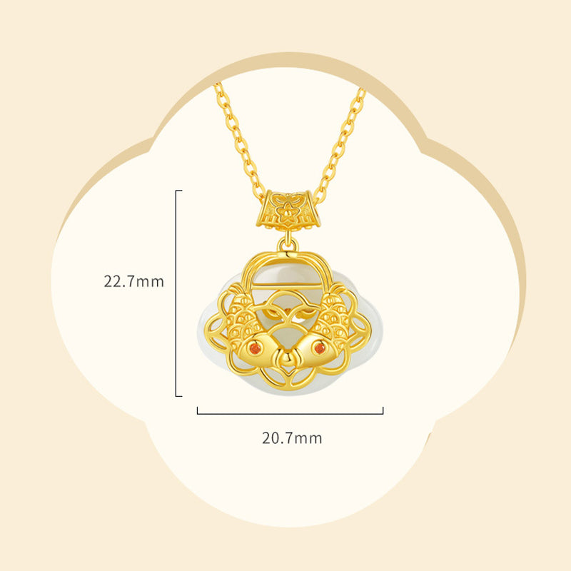 Collier pendentif en argent sterling 925 Buddha Stones en jade naturel Hetian Koi Fish Wealth