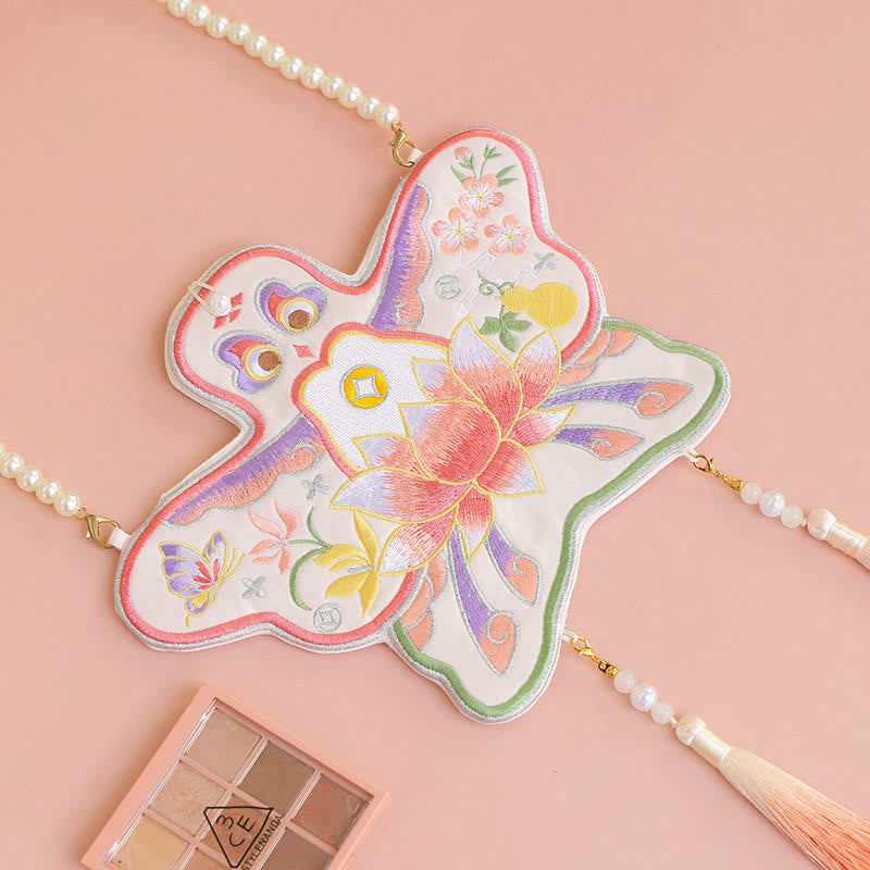 Fabriqué avec une attention méticuleuse aux détails, le sac Hanfu brodé Buddha Stones Luck est une fusion d'élégance et de symbolisme . Doté d'une broderie complexe de lotus , de poissons koï , de lapin et de fleurs , ce sac à bandoulière rehausse non seulement votre style, mais transporte également l'essence de la chance et des bénédictions partout où vous allez.💕