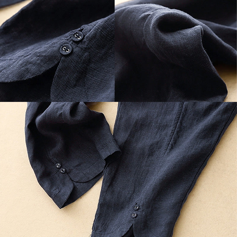 Pantalon Buddha Stones d'été en coton et lin pour femme, couleur unie, avec boutons latéraux et poches - image 11
