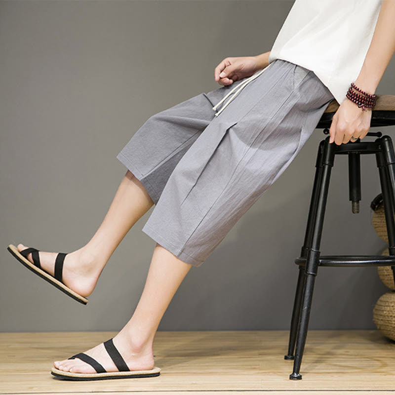 Pantalon Buddha Stones décontracté d'été en coton et lin pour homme, couleur unie, avec cordon de serrage et poches - image 1