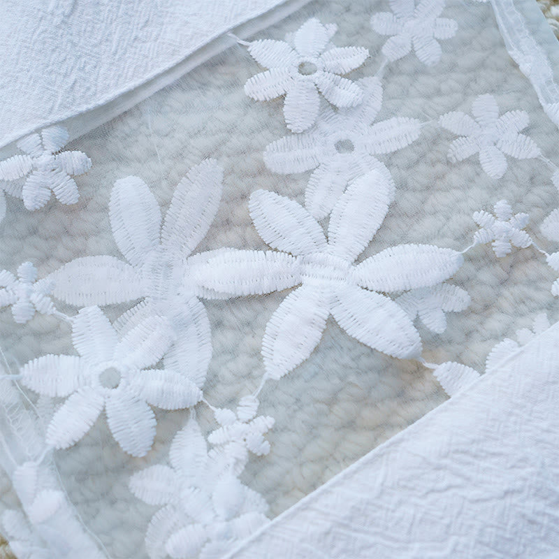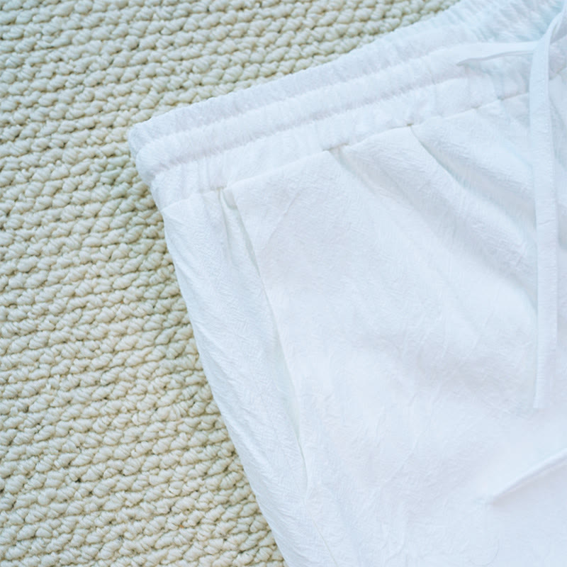 Pantalon femme en coton et lin avec poches, motif patchwork en dentelle et motif floral blanc uni, motif Buddha Stones , été