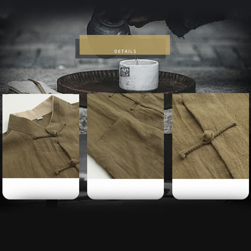 Chemise à manches longues à boutons de grenouille Buddha Stones Tang en coton et lin pour hommes - image 20