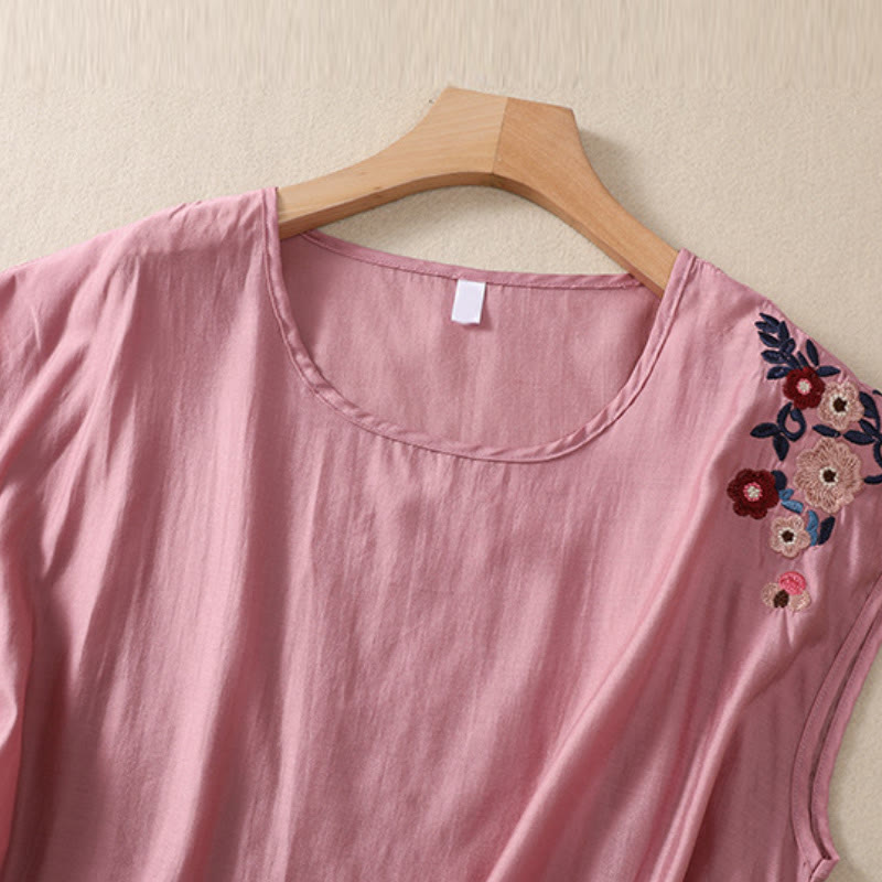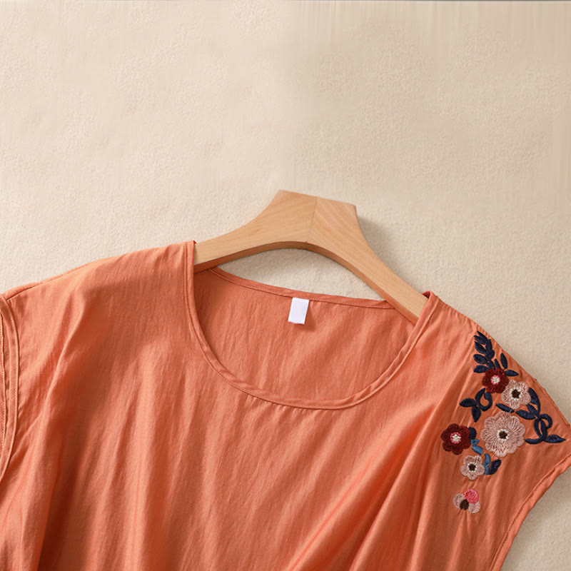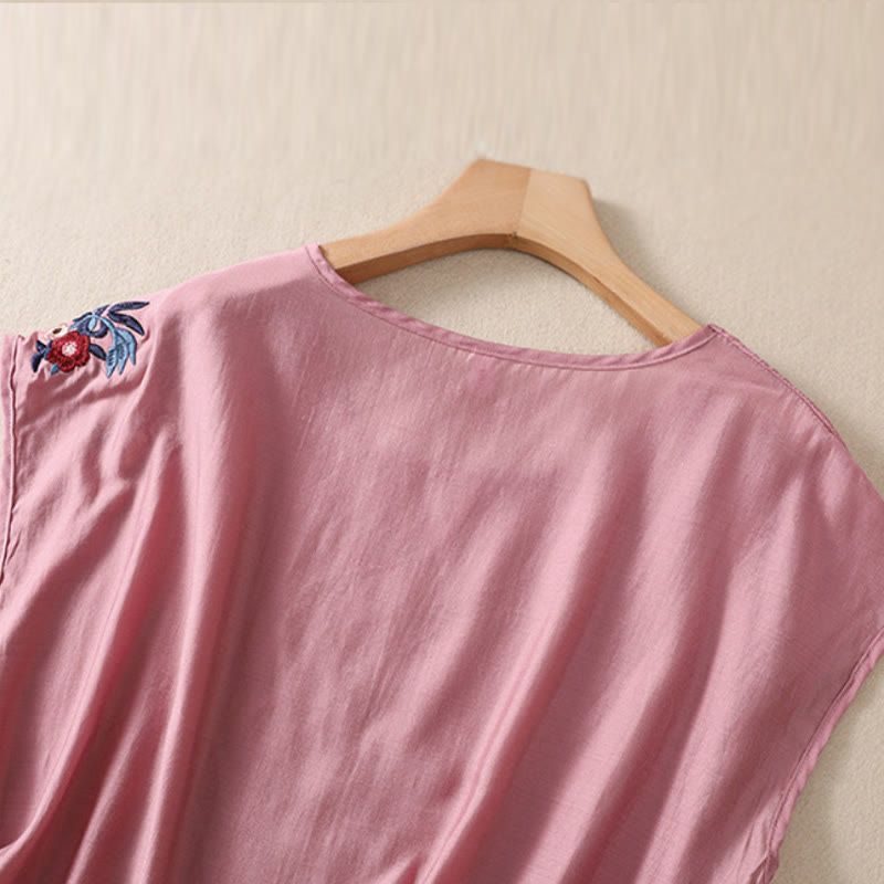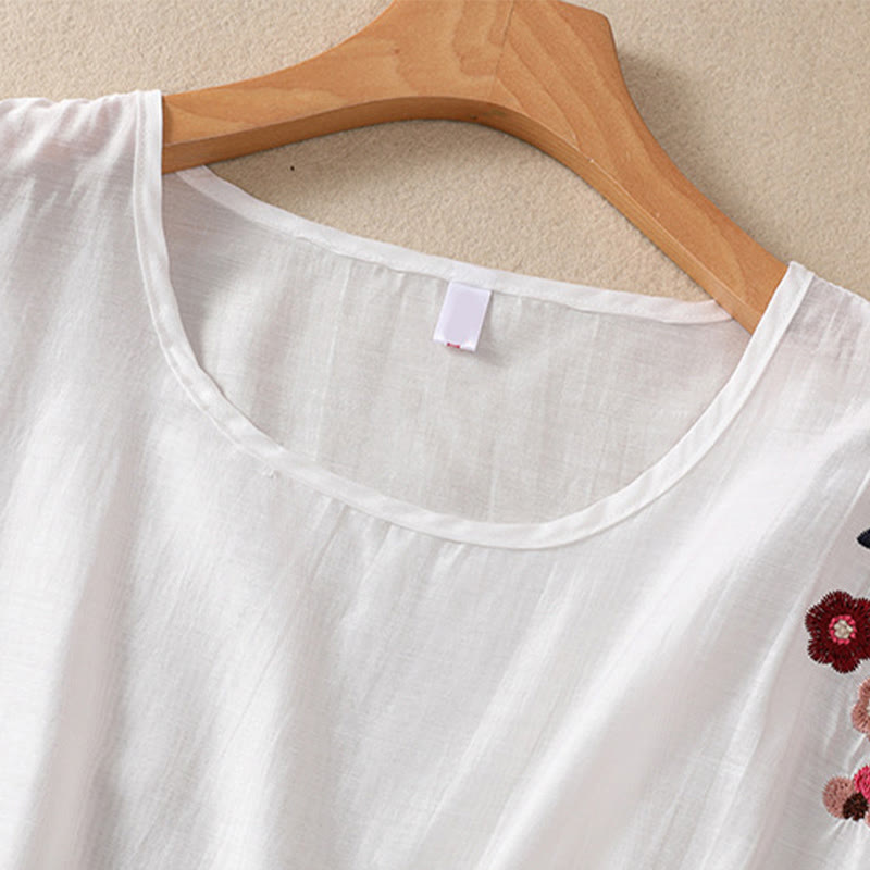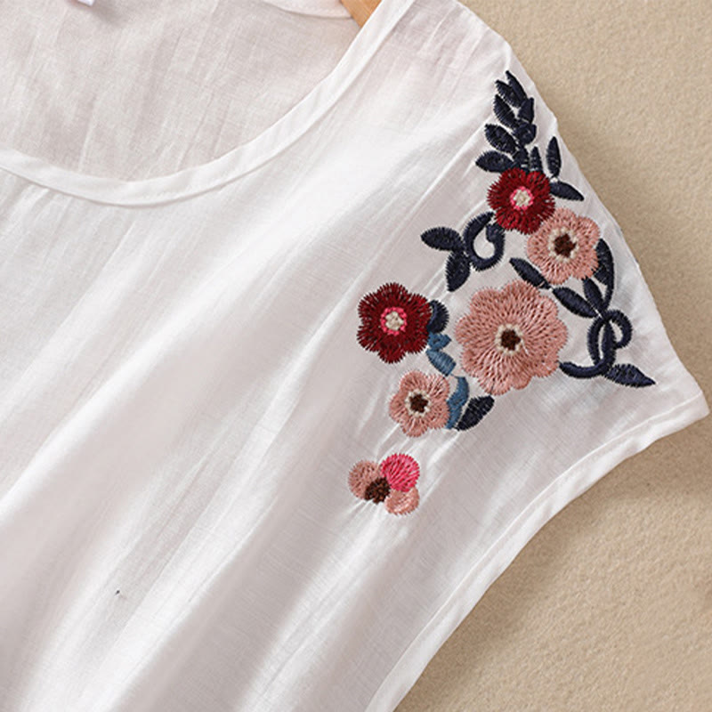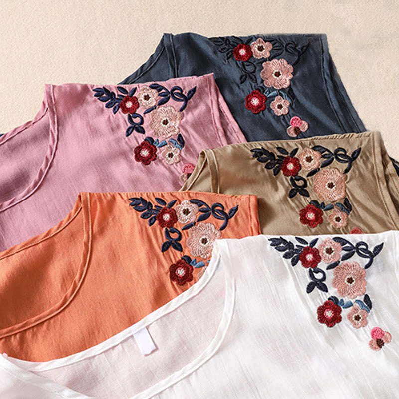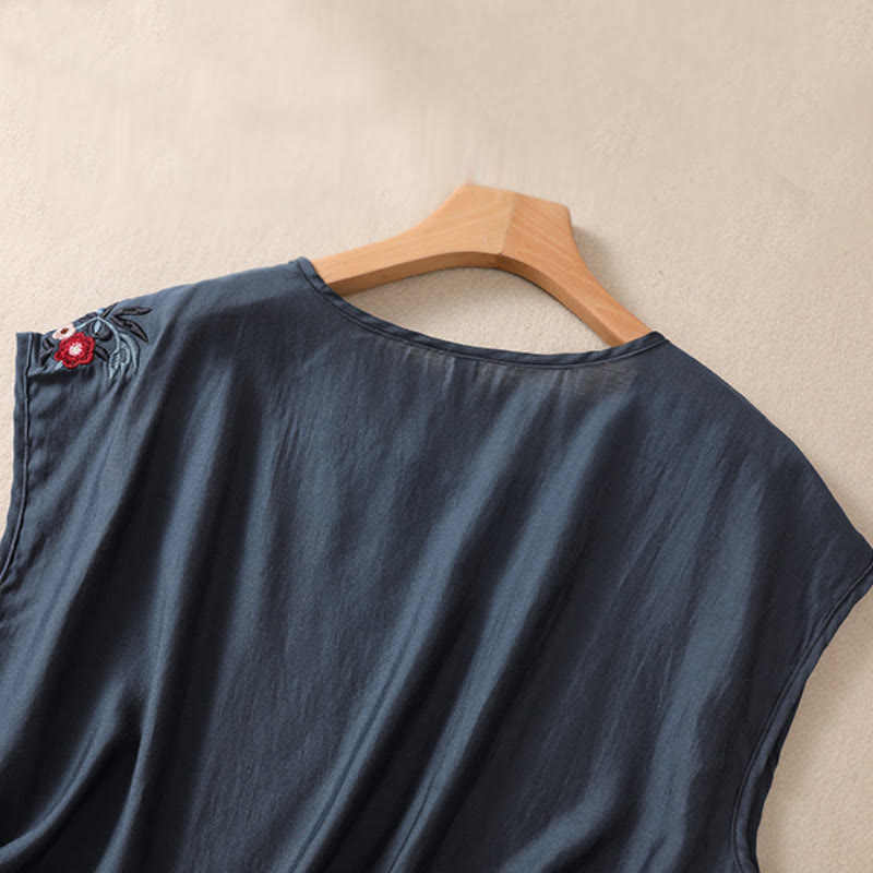 Gilet décontracté vintage uni brodé de fleurs, style Buddha Stones, sans manches, col ras du cou, en coton et lin, pour femme