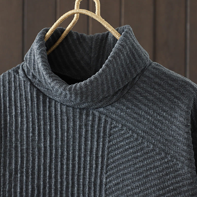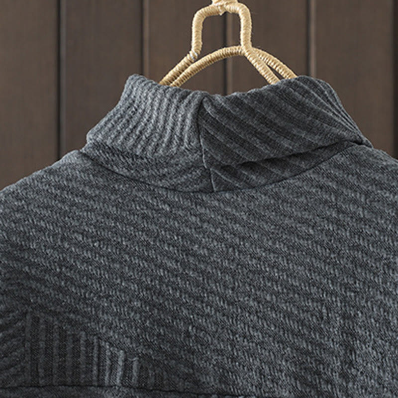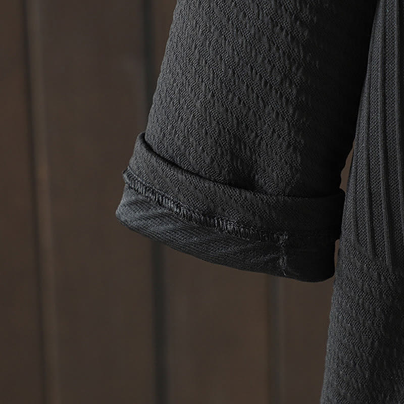Robe mi-longue à col roulé et manches longues en coton avec poches et motif irrégulier de Buddha Stones