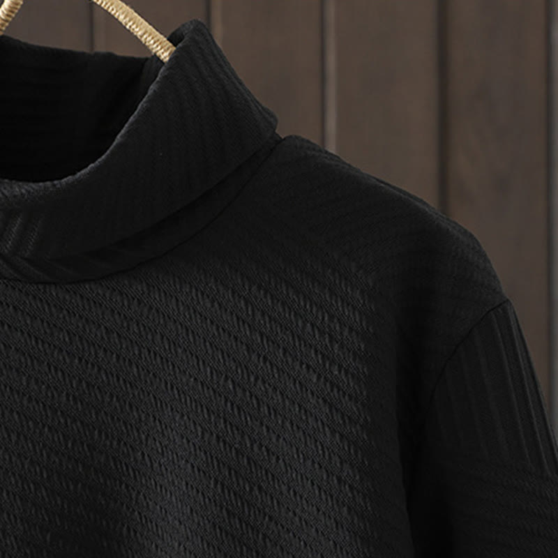 Robe mi-longue à col roulé et manches longues en coton avec poches et motif irrégulier de Buddha Stones - Noir - US8-10,UK/AU12-14,EU40-42 (2XL) - image 0