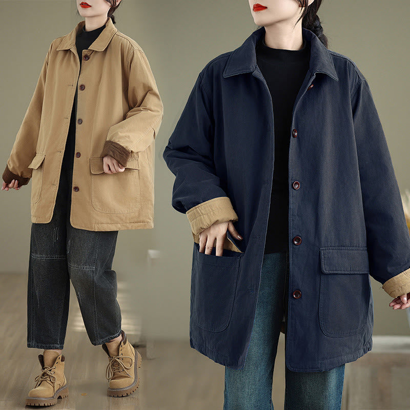 Veste matelassée à manches longues en coton pour femme, avec poches et boutons à revers, motif Buddha Stones