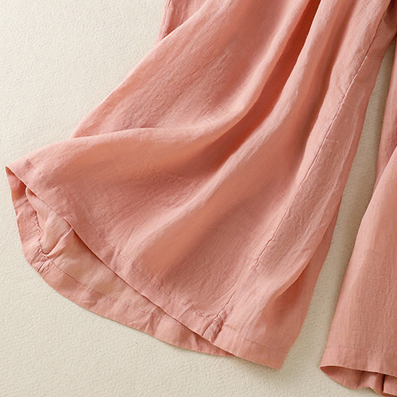 Pantalon large en coton avec cordon de serrage et broderie Buddha Stones pour femme, avec poches - image 33
