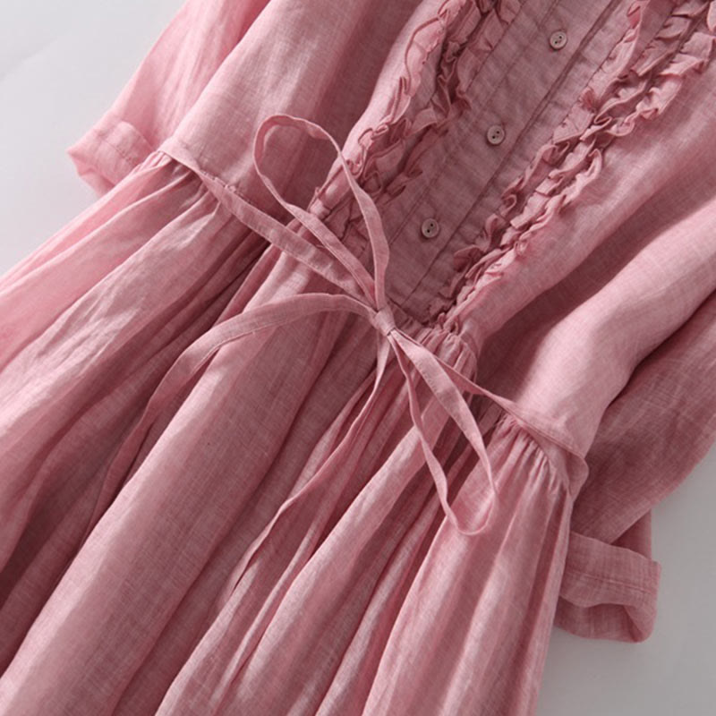 Robe mi-longue décontractée à volants et manches courtes pour femme, avec lacets et poches, style Buddha Stones - image 7