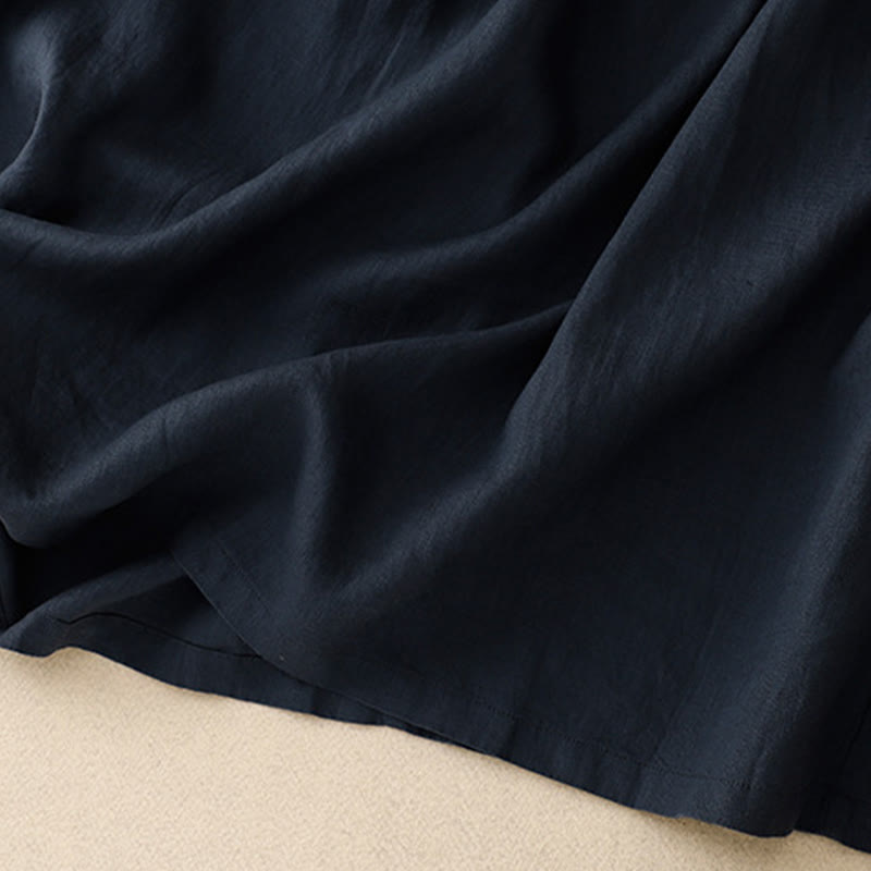 Robe mi-longue décontractée en coton et lin à col ras du cou et lacets, avec poches - Bleu nuit - US8-10,UK/AU12-14,EU40-42 (2XL) - image 0