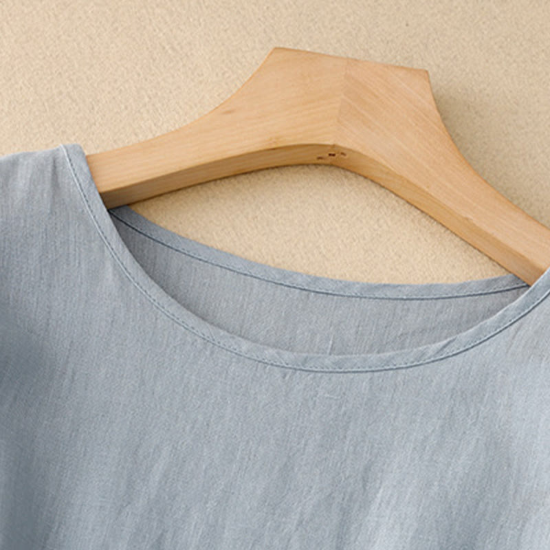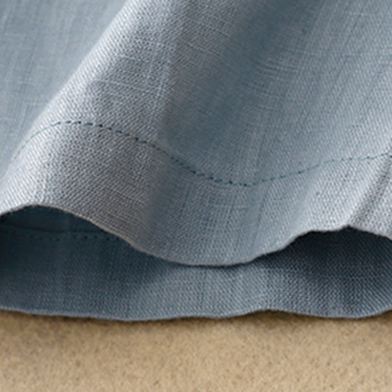 Robe mi-longue décontractée en coton et lin à col ras du cou et lacets, avec poches