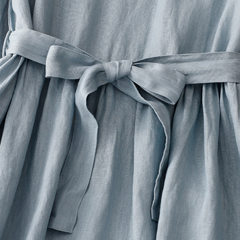 Robe mi-longue décontractée en coton et lin à col ras du cou et lacets, avec poches - Bleu ciel - US8-10,UK/AU12-14,EU40-42 (2XL) - image 7