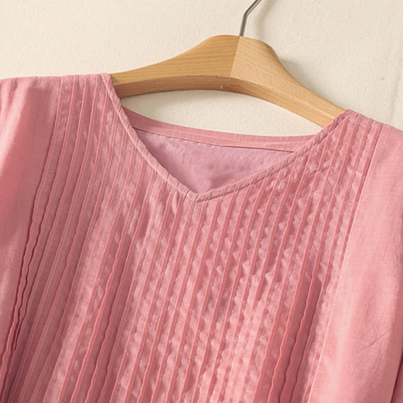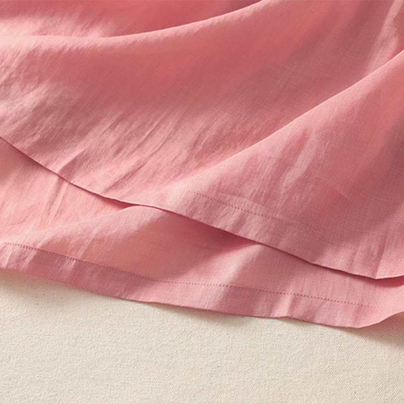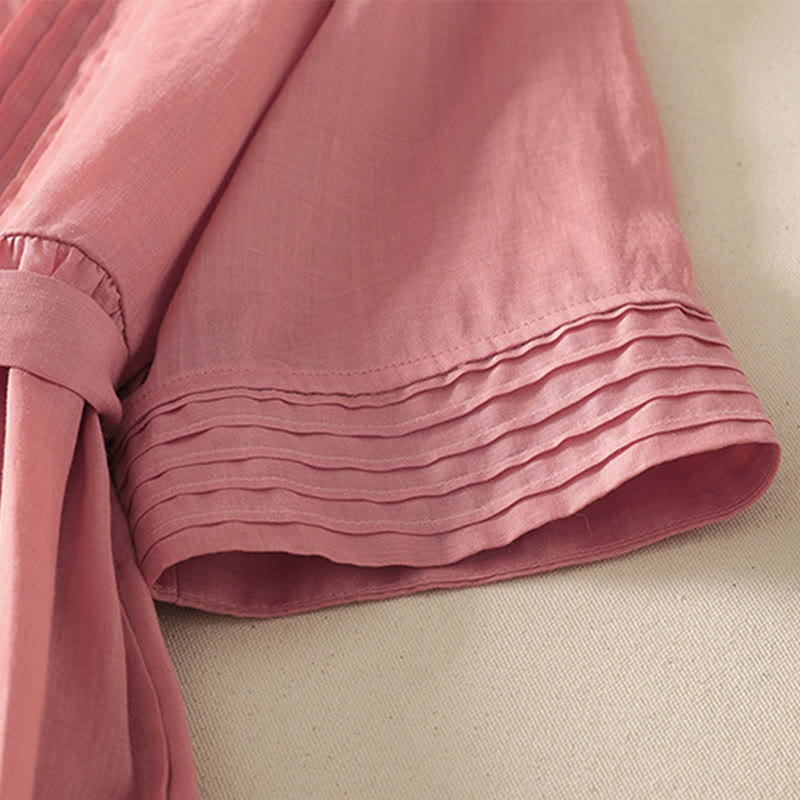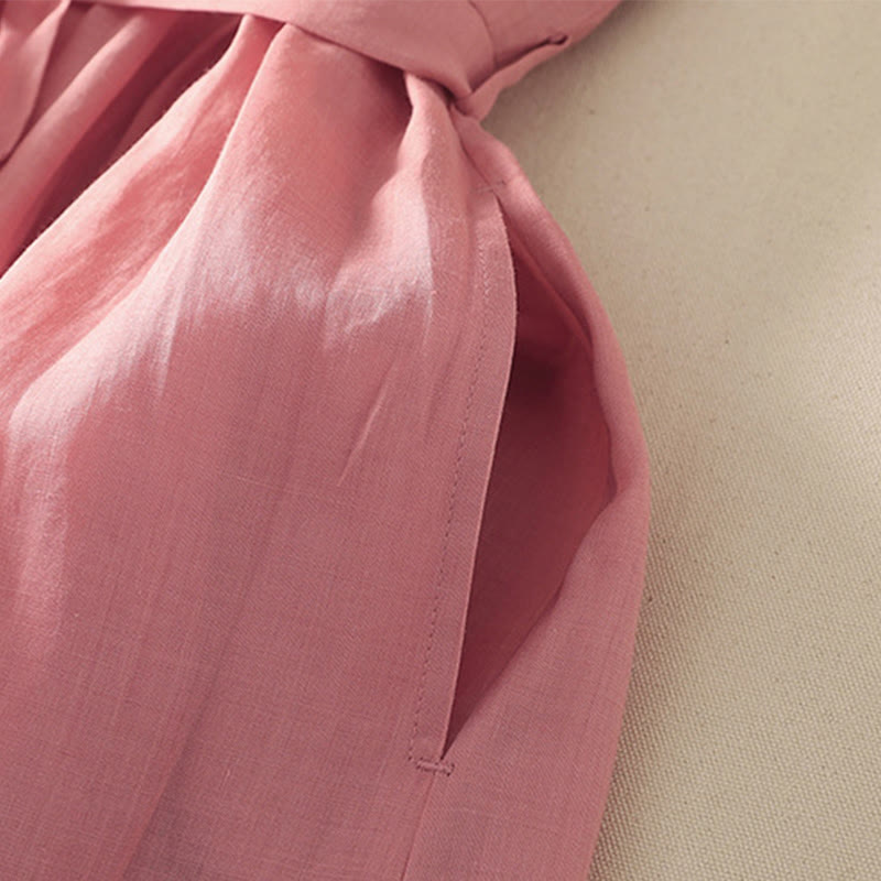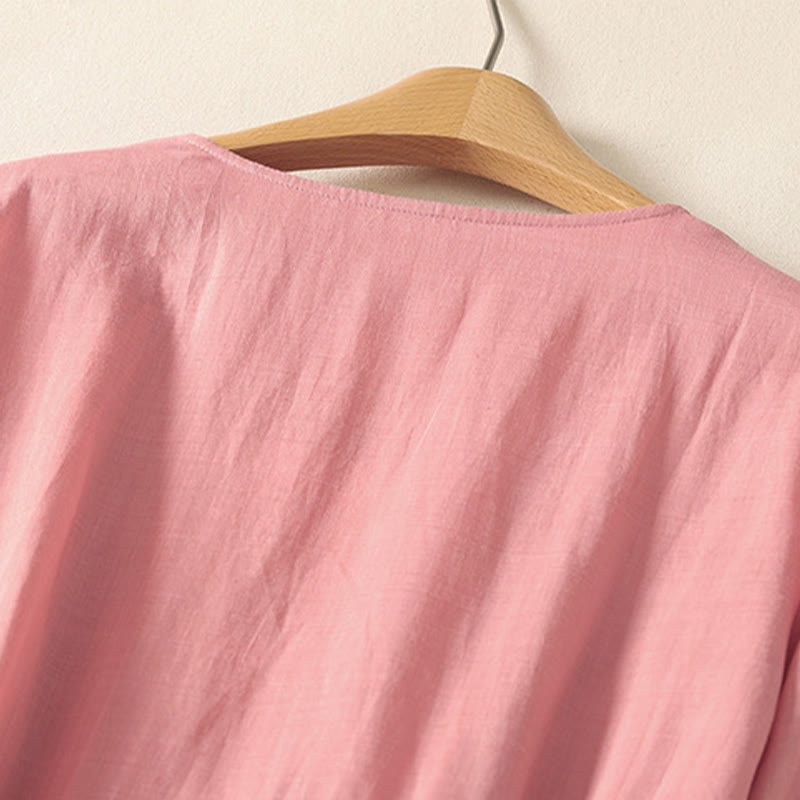 Robe mi-longue d'été à manches courtes et plis pour femme, en coton et lin, avec poches, motif Buddha Stones - MistyRose - US8-10,UK/AU12-14,EU40-42 (2XL) - image 0