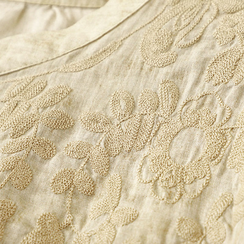 Robe mi-longue d'été décontractée brodée à col montant et manches trois-quarts en acrylique avec Buddha Stones - image 11