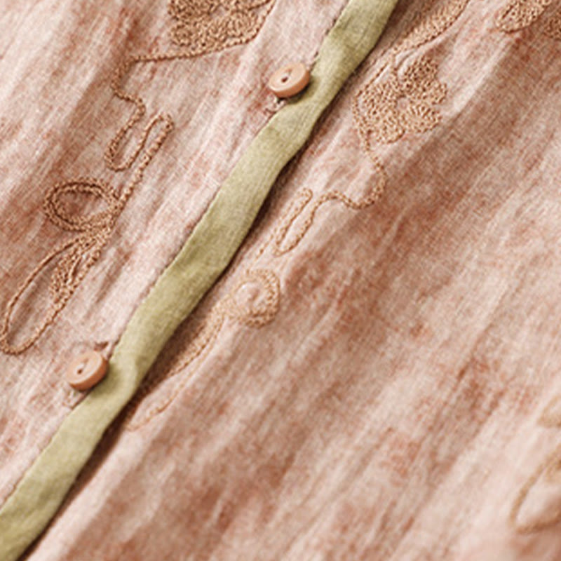 Robe mi-longue d'été décontractée brodée à col montant et manches trois-quarts en acrylique avec Buddha Stones - Rose - US8-10,UK/AU12-14,EU40-42 (2XL) - image 18