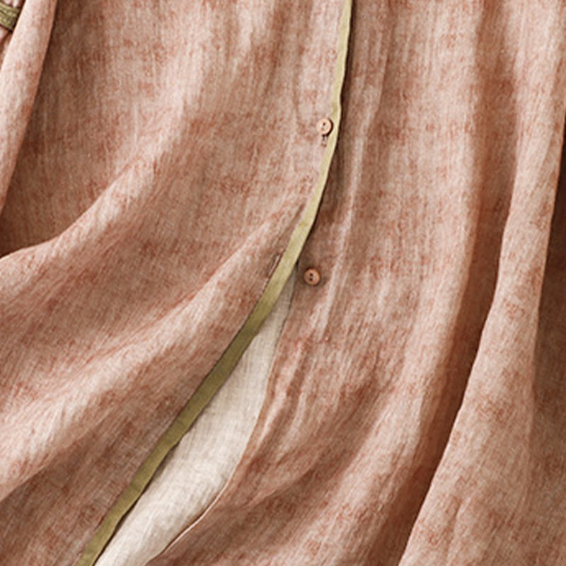 Robe mi-longue d'été décontractée brodée à col montant et manches trois-quarts en acrylique avec Buddha Stones - LightCoral - US8-10,UK/AU12-14,EU40-42 (2XL) - image 6
