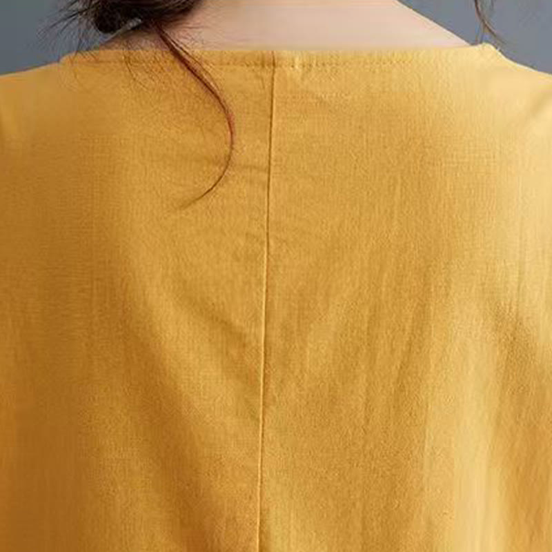 Robe mi-longue d'été en coton et lin à manches courtes avec imprimé Buddha Stones et motif phénix - Or - US14,UK/AU18,EU46 (4XL) - image 8