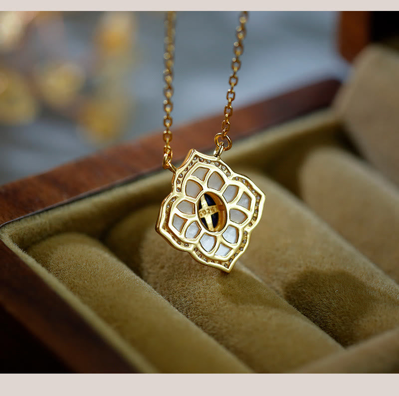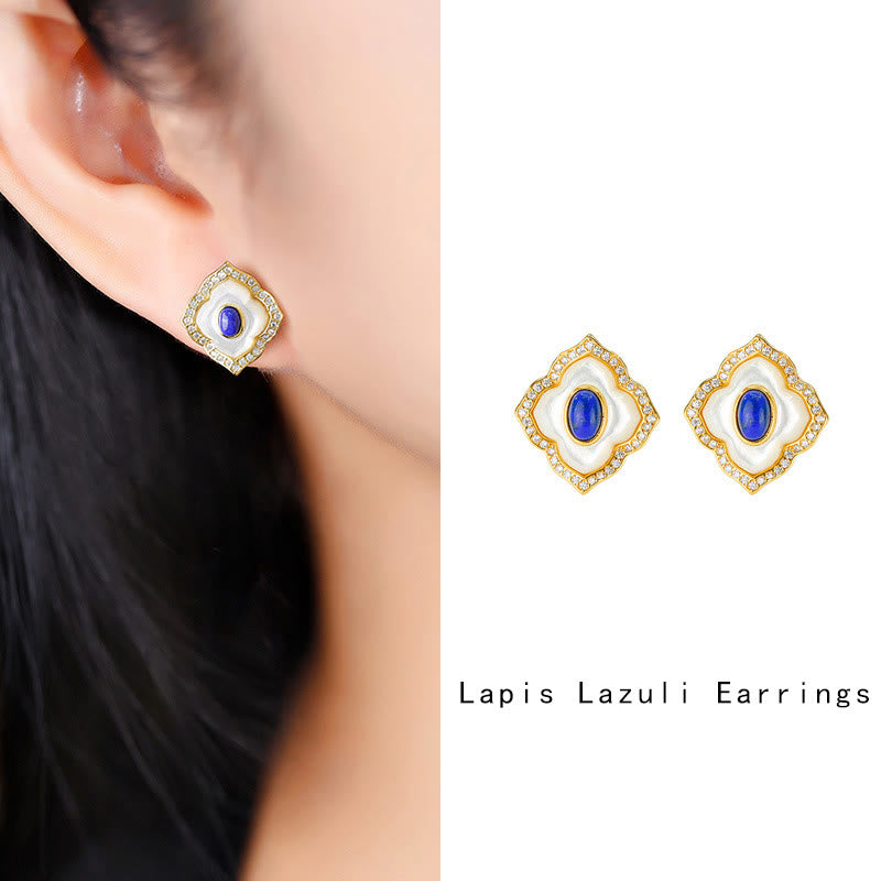 - Matériau : pierre de Tridacna, lazurite, pierre de Tridacna incrustée de lazurite, zircon, pièces métalliques : argent sterling 925