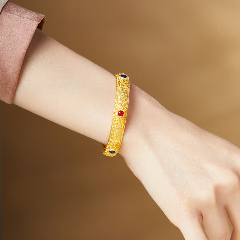 Bracelet jonc vintage en argent sterling 999 avec pierres de Bouddha et nuages de bon augure, BS 1