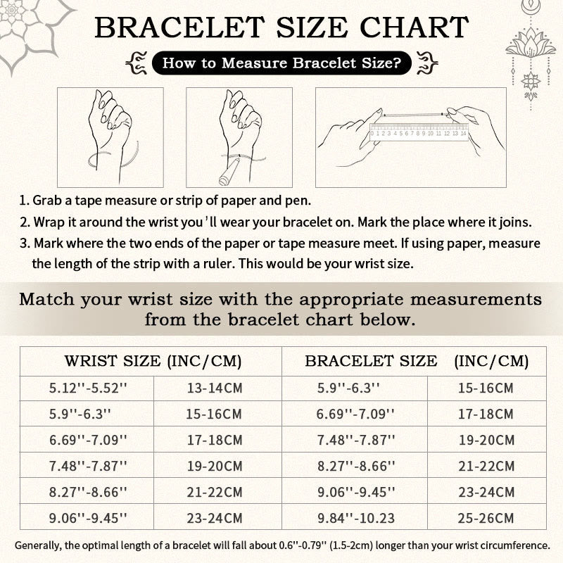- Taille du bracelet : environ 1,14 x 0,67 po (29 x 17 mm)