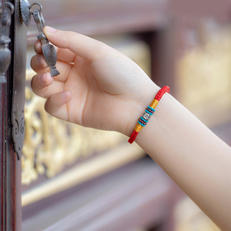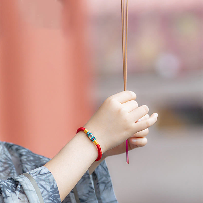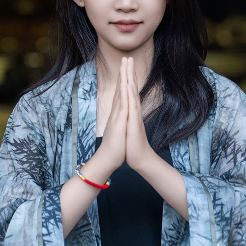 Dans les lignées du bouddhisme tibétain Vajrayana, il est courant d'attacher un cordon ou une ficelle autour du poignet lors des cérémonies. Traditionnellement, le lama bénit le cordon, puis fait un nœud et l'imprègne d'un mantra. Comme dans d'autres traditions, on dit que ces cordons rouges portent chance et offrent protection. Dans la légende chinoise ancienne, le fil rouge du destin est invisible et relie tous ceux dont les vies vont s'entremêler. Il est gouverné par le dieu chinois du mariage, Yue Lao, car il est principalement associé au lien entre deux personnes destinées à se marier. Tout au long de l'histoire et à travers les philosophies, le fil rouge a été porté pour la protection, la foi, la chance, la force et la connexion.