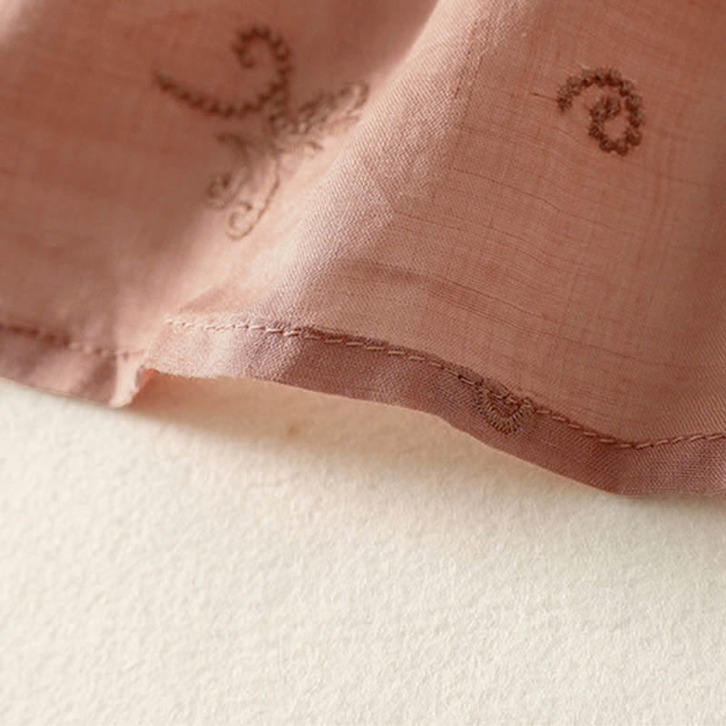 Buddha Stones Chemise à manches courtes boutonnée à motif floral brodé rétro pour femme