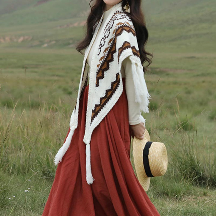 Le châle triangulaire Buddha Stones , avec son motif rayé et ses pompons, est l'incarnation de l'élégance douillette . Parfait pour voyager, son design symbolise le voyage et l'aventure . Conçu pour la chaleur et le confort , c'est un accessoire idéal pour s'envelopper, que ce soit pour explorer de nouveaux endroits ou profiter d'un moment de calme à la maison.