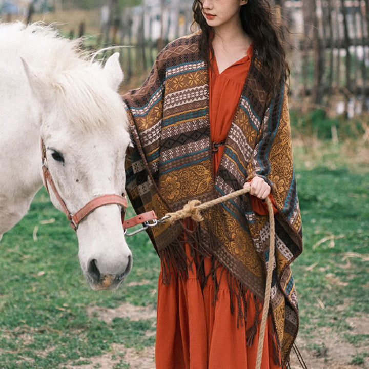 Écharpe enveloppante confortable Buddha Stones et rayures horizontales géométriques tibétaines, motif fleur et feuille, pour l'automne et l'hiver