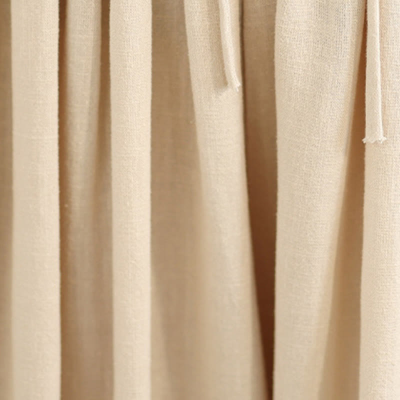 Pantalon large en coton avec poches pour femme, broderie printanière en Buddha Stones , ourlet patchwork et cordon de serrage - Beige - US8-10,UK/AU12-14,EU40-42 (2XL) - image 0