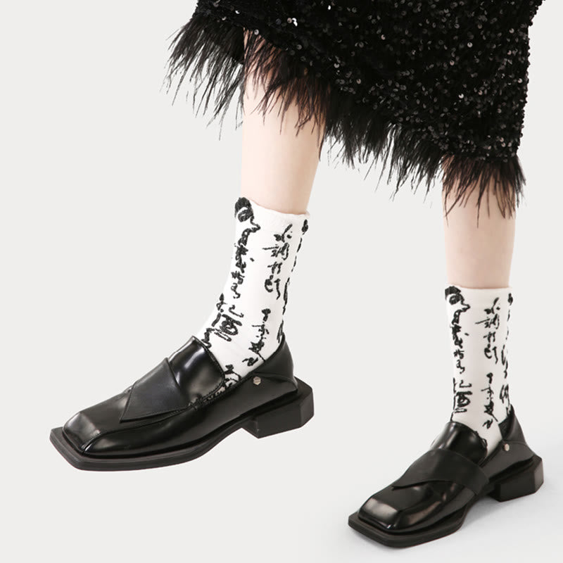 - Conception de calligraphie : Inspirées de la calligraphie chinoise traditionnelle, ces chaussettes présentent des motifs de coups de pinceau fluides qui transmettent élégance et profondeur culturelle, transformant le port quotidien en une déclaration artistique subtile.