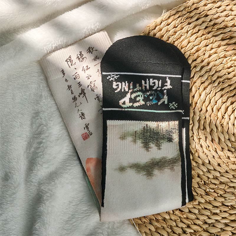 - Design artistique : Inspirées de la peinture de paysage traditionnelle chinoise, ces chaussettes arborent d'élégants coups de pinceau à l'encre qui apportent une touche artistique et culturelle à votre quotidien. Un gracieux lotus peint à l'encre symbolise la pureté et la résilience, alliant beauté et sens à chaque pas.