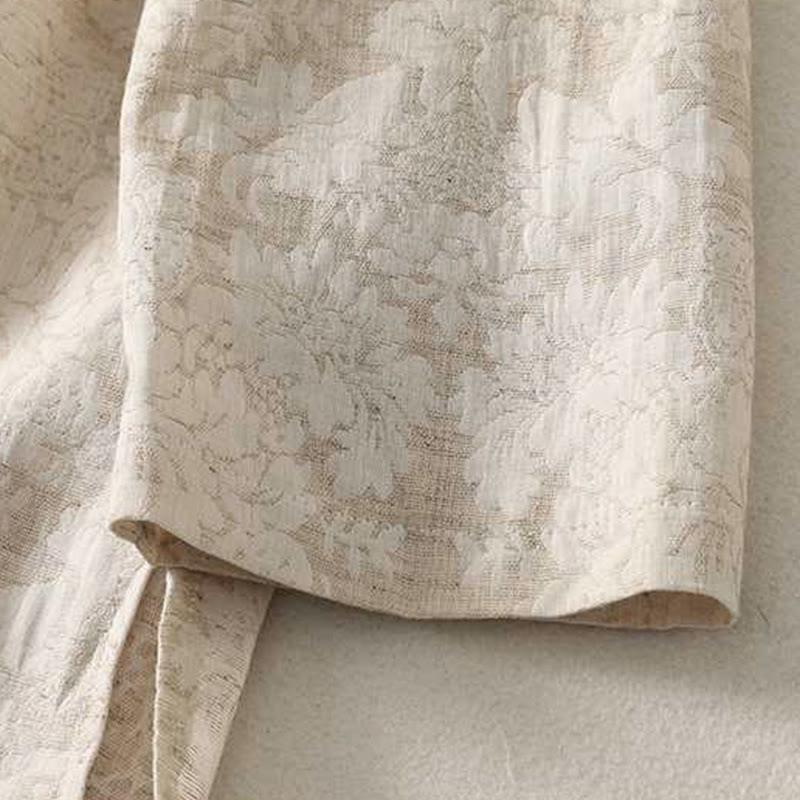 Chemise à manches longues en coton et lin Buddha Stones pour femme, motif texturé, fermeture à boutons brandebourg.