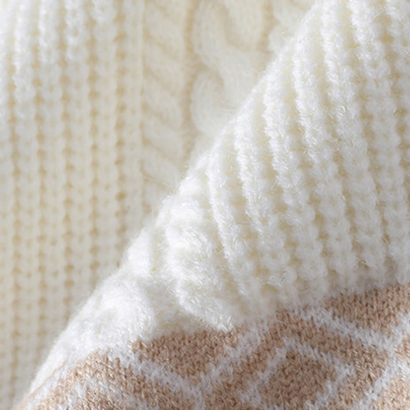 - Remarque : Le t-shirt blanc est uniquement utilisé comme accessoire photo et n'est pas inclus dans le pull.