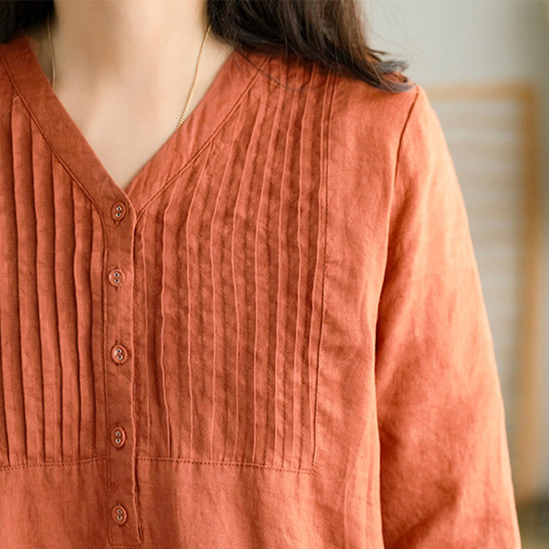 Robe midi Buddha Stones à plis accordéon, col en V, manches mi-longues et poches - Corail - US12,UK/AU16,EU44 (3XL) - image 6